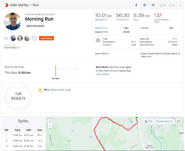 1 2020-07-26 10:04:45 Dale Maltby 00:56:30M40-49 Redway Runners Link